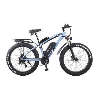The Shengmilo MX04 electric mountain bike is a high-performance option for demanding riders. With a 1000W motor and 48V 15Ah Lithium-ion battery, this e-bike can reach speeds of up to 45km/h and travel up to 80km on a single charge. Equipped with Shimano 21-speed transmission, advanced suspension, and fat tires, the Shengmilo MX04 is a versatile option for off-road and daily commutes. -
